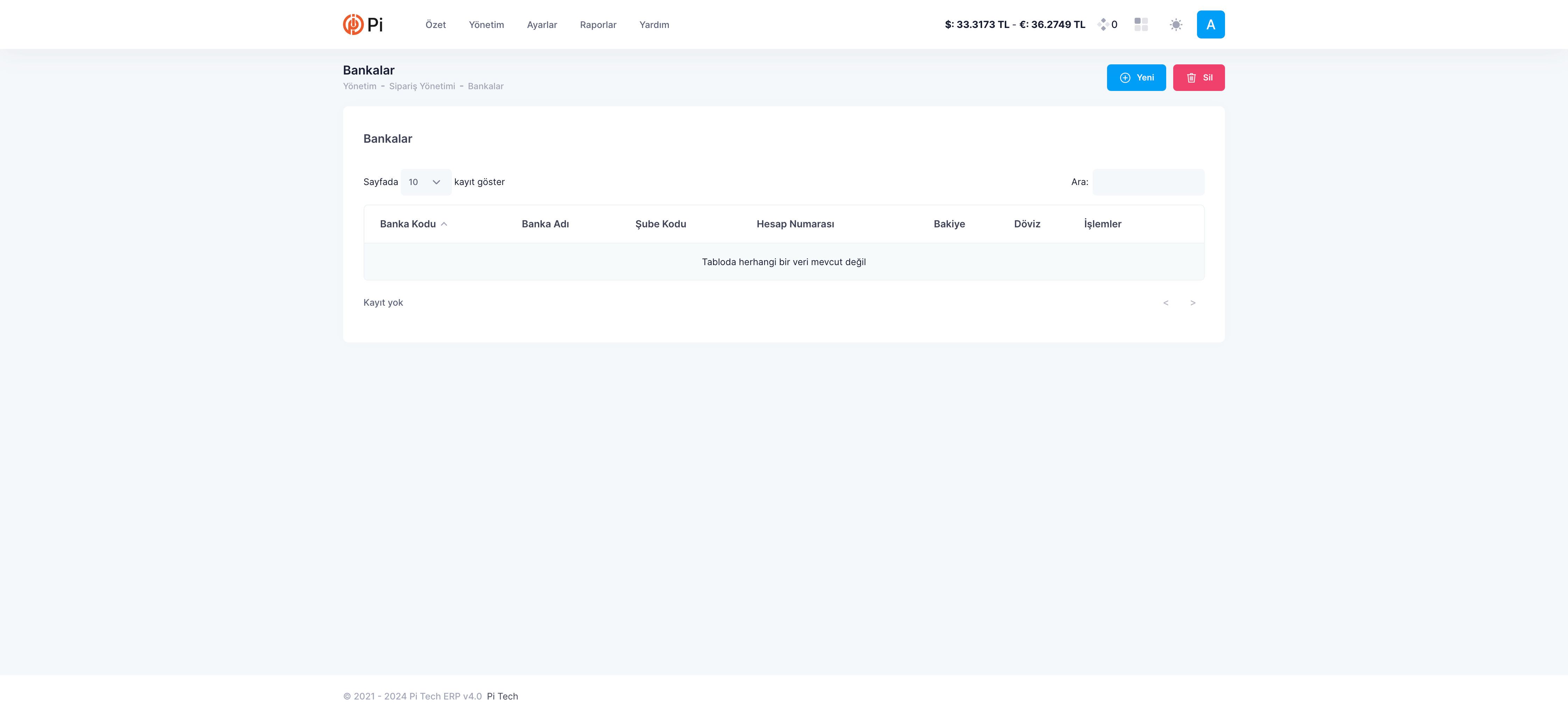 Birden fazla bankayı silmek için; ilgili satırın başında bulunan kutucuğu seçin. Sayfanın sağ üstünde bulunan Sil butonuna tıklayın. Gelen uyarıyı onaylayın.