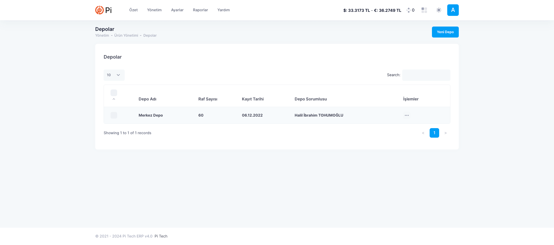 Depolar sayfasında sağ üst tarafta bulunan ‘Yeni Depo’ butonuna tıklayın.