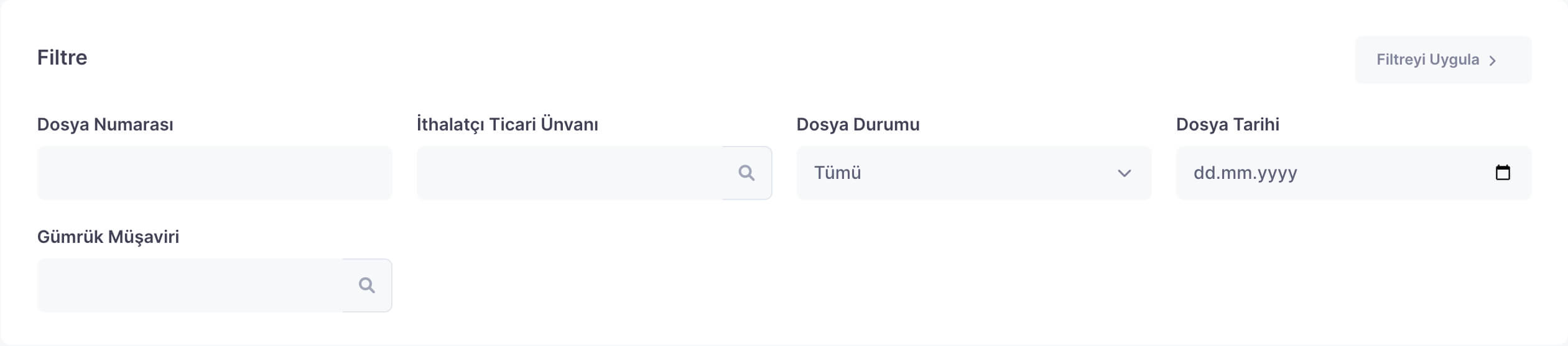 Kayıt edilen ihracat dosyaları arasından ilgili kaydı bulmak veya belirli kriterlere göre dosyaları filtrelemek için ‘Filtre’ alanını kullanın. Kriterleri belirledikten sonra alanın sağ üst tarafından bulunan ‘Filtreyi Uygula’ya tıklayın.