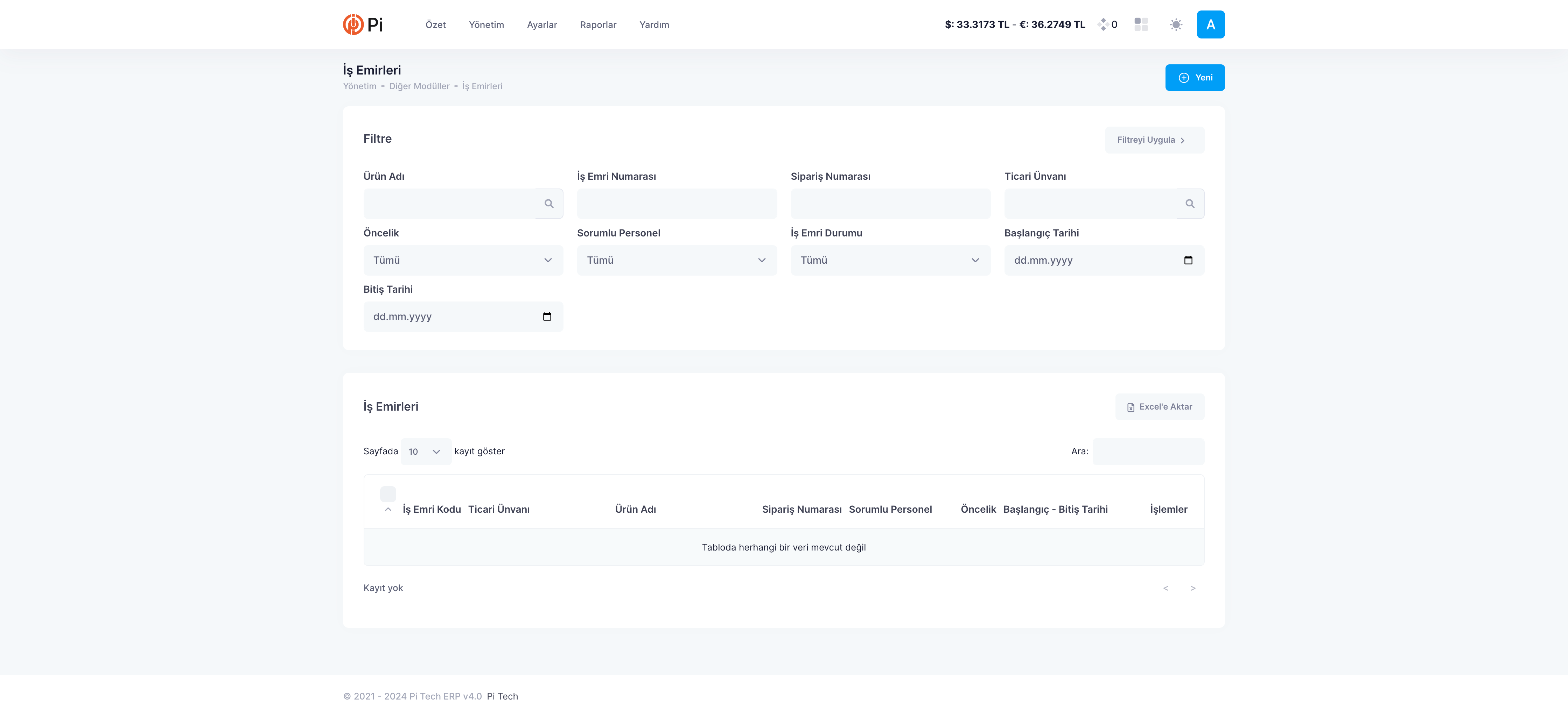 Yeni bir iş emri kayıt etmek için Menü Çubuğu’nda bulunan Yönetim > Diğer Modüller > İş Emirleri’ne tıklayın. Aşağıdaki adımları uygulayın: