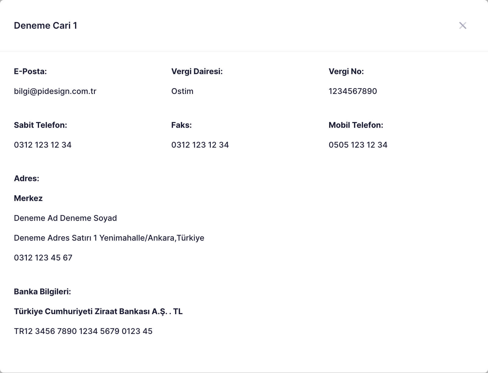 Açılan ‘Cari Düzenleme’ sayfasında bulunan alanları güncelleyin. (Zorunlu alanlar * ile belirtilmiştir.)
