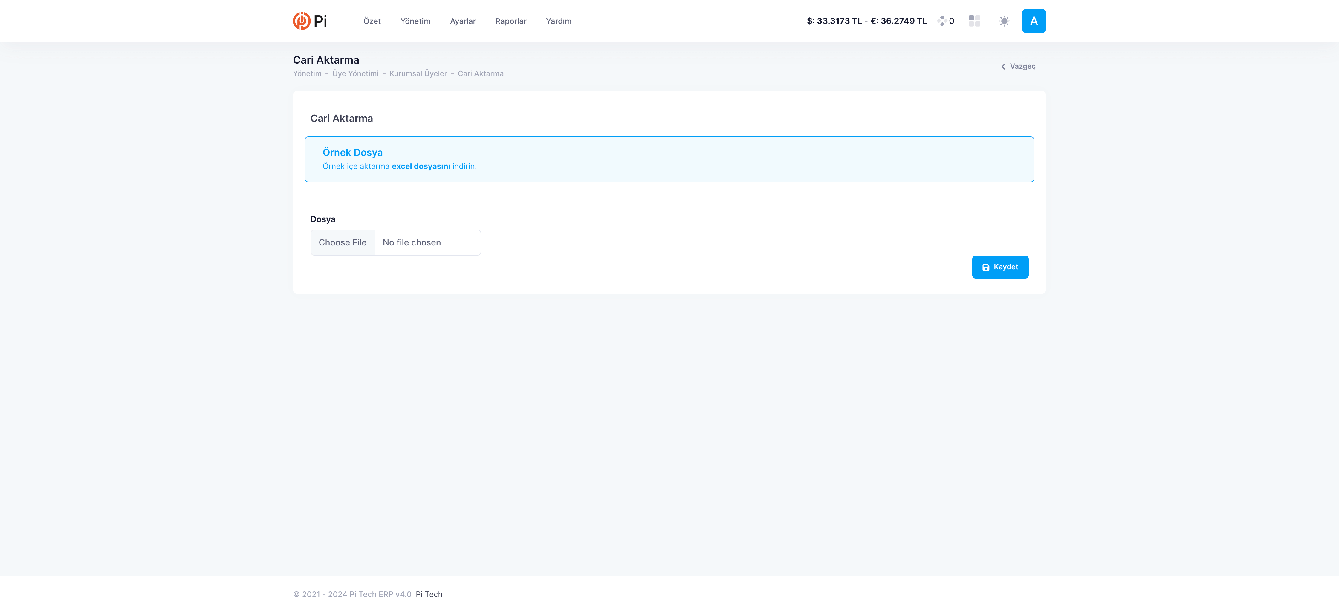 8. Kurumsal Üyeleri Excel’den İçe Aktarma