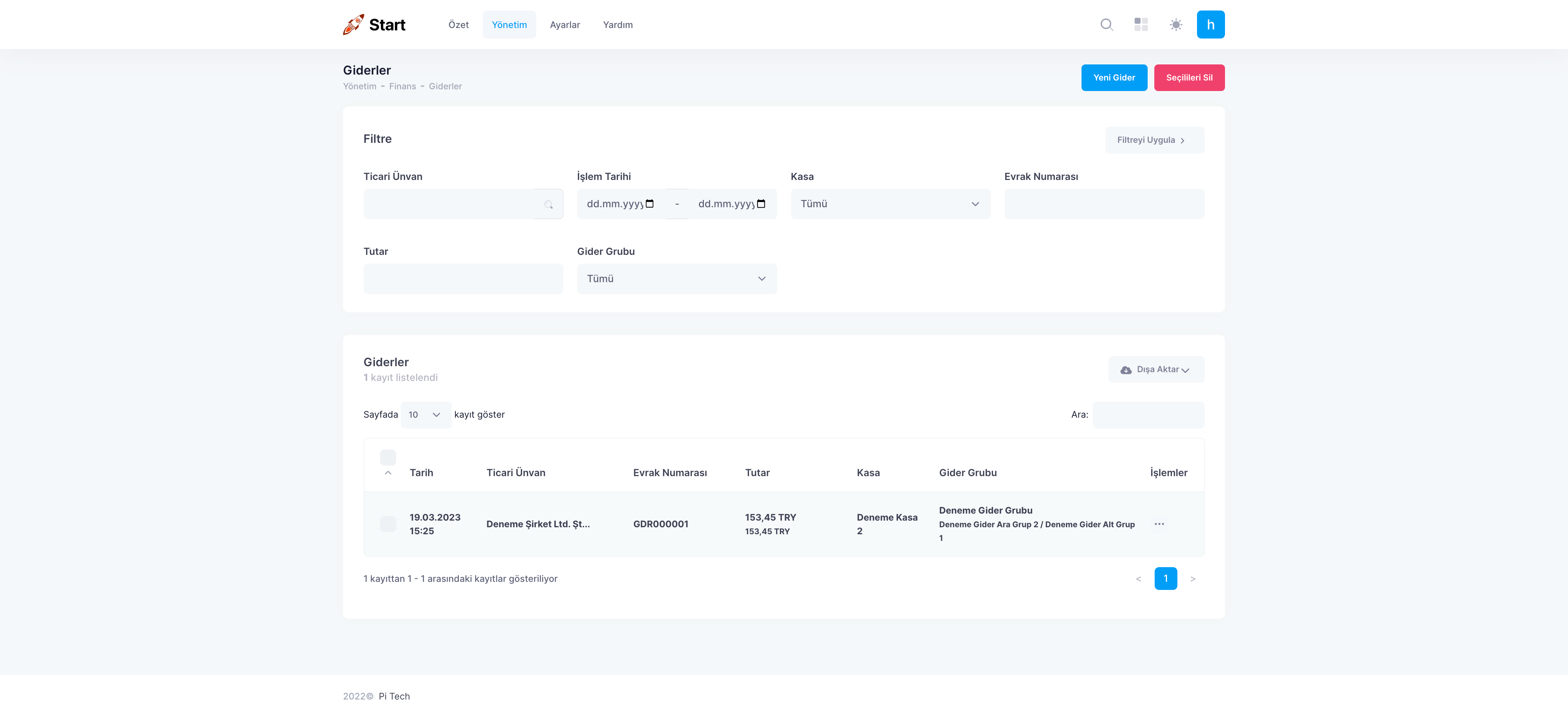 1. Yeni Gider Kaydı