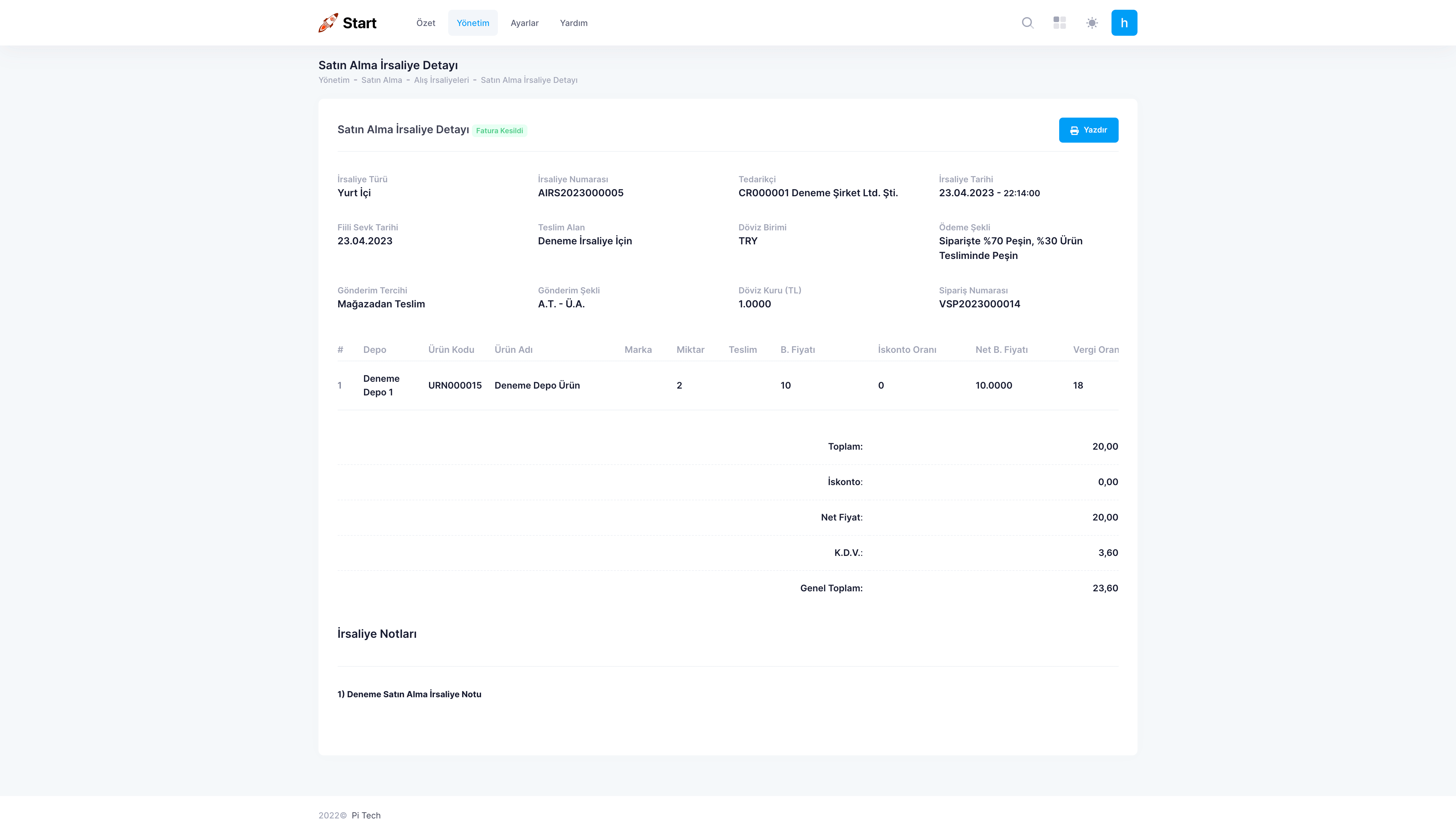 7. İrsaliye Detayını Görüntüleme