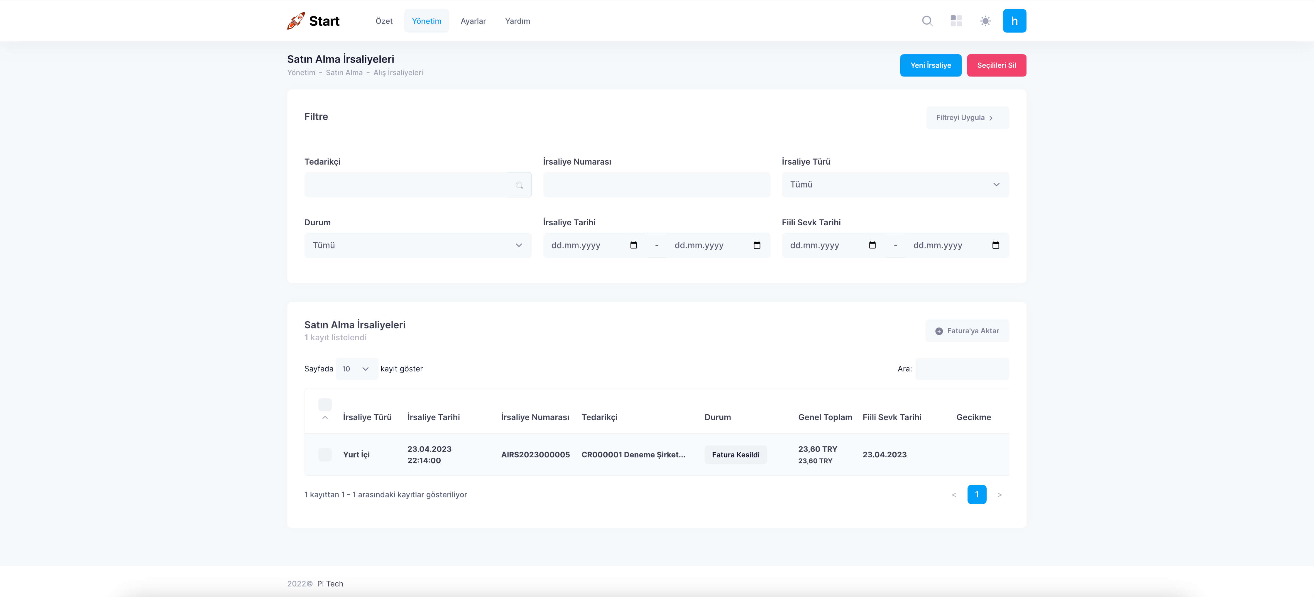 4. İrsaliye Arama ve Filtreleme