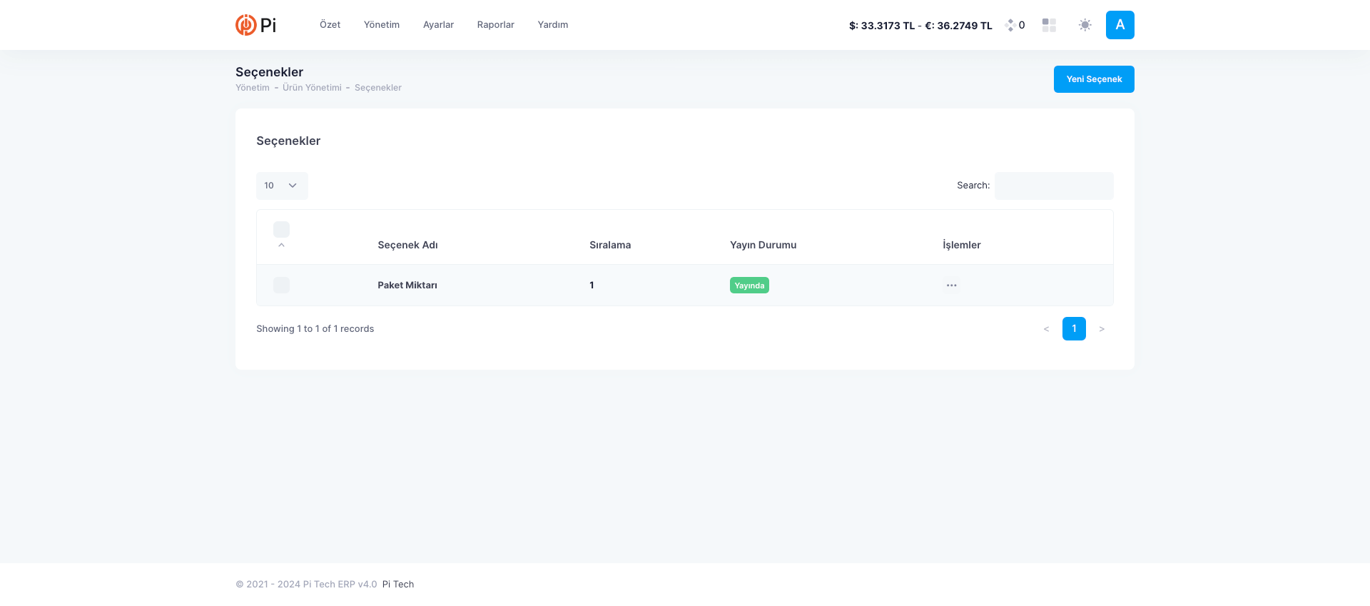 1. Yeni Seçenek Oluşturma