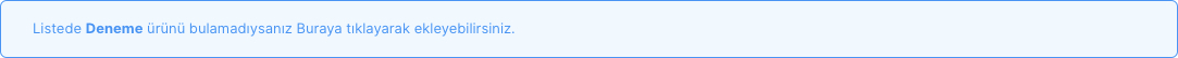 Eğer aradığınız ürün listelenmediyse arama kutusunun altında bulunan ‘Buraya Tıklayarak’ linkine tıklayın ve açılan penceredeki gerekli alanları doldurun. Pencerenin altında bulunan ‘Kaydet’ butonuna tıklayın. Kaydedilen ürün otomatik listelenir.