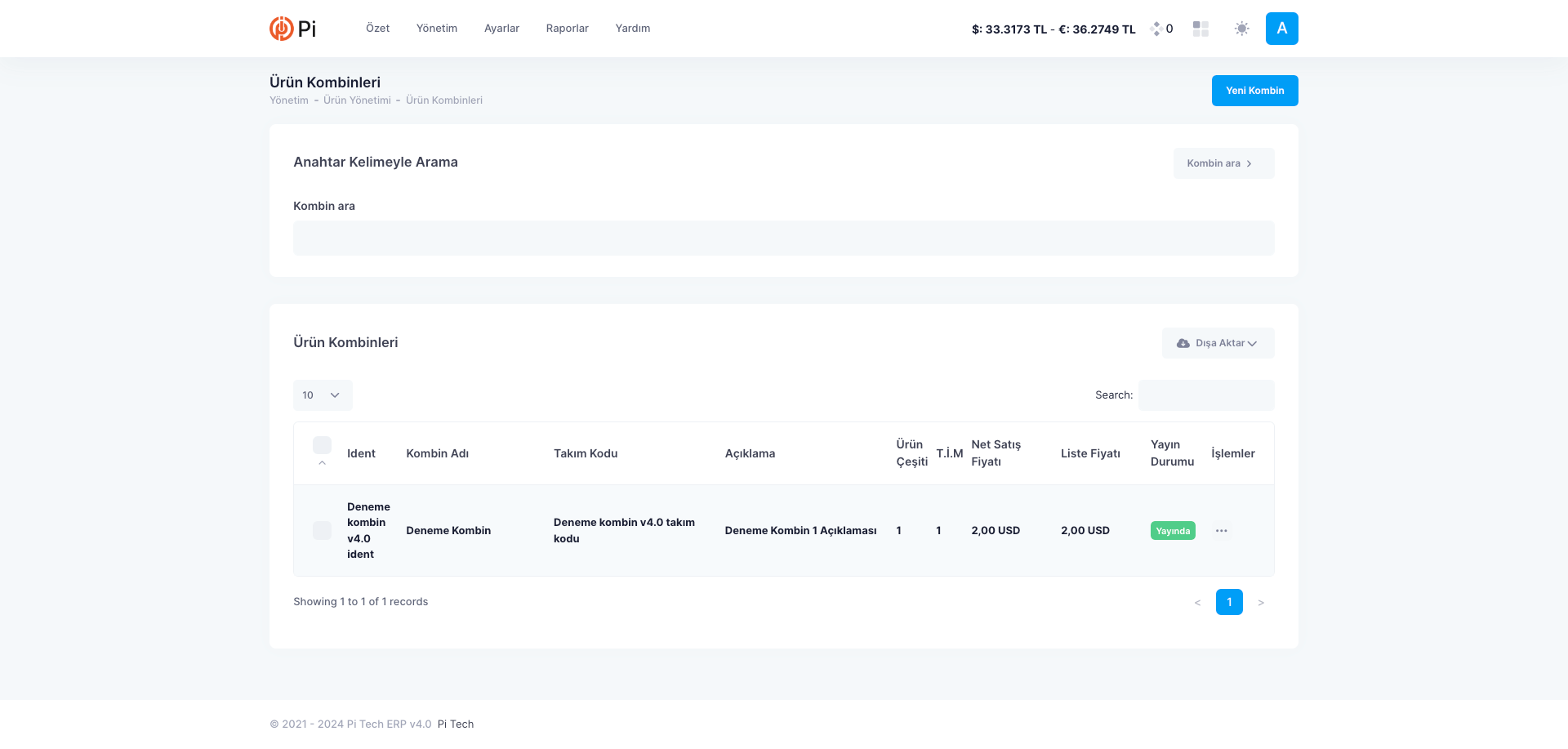 Ürün Kombinleri sayfasında sağ üst tarafta bulunan ‘Yeni Kombin’ butonuna tıklayın.